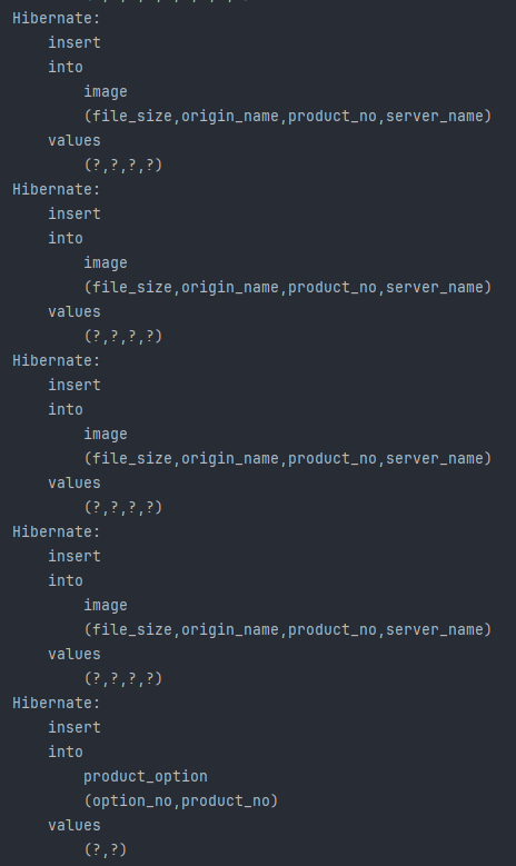 String sql = "INSERT INTO image (product_no, server_name, origin_name, file_size) VALUES (:productNo, :serverName, :originName, :fileSize)";