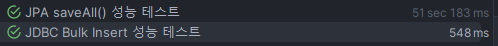 @DisplayName("JDBC Bulk Insert 성능 테스트")