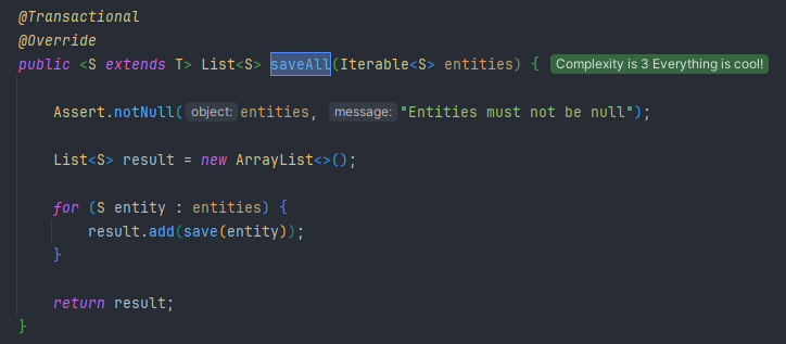 데이터마다 Insert 쿼리를 날리는 이유는 사실, saveAll()의 내부구조를 보면 알 수 있다.